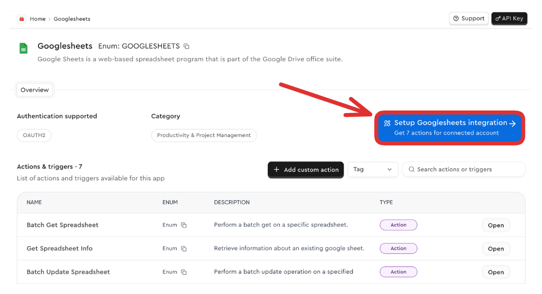 An Integration is the developer-level configuration within Composio for a specific external app (like GitHub, Slack, Google Calendar). It acts as the blueprint defining how Composio should interact with that app, including its authentication method (OAuth, API Key, etc.) and API details.